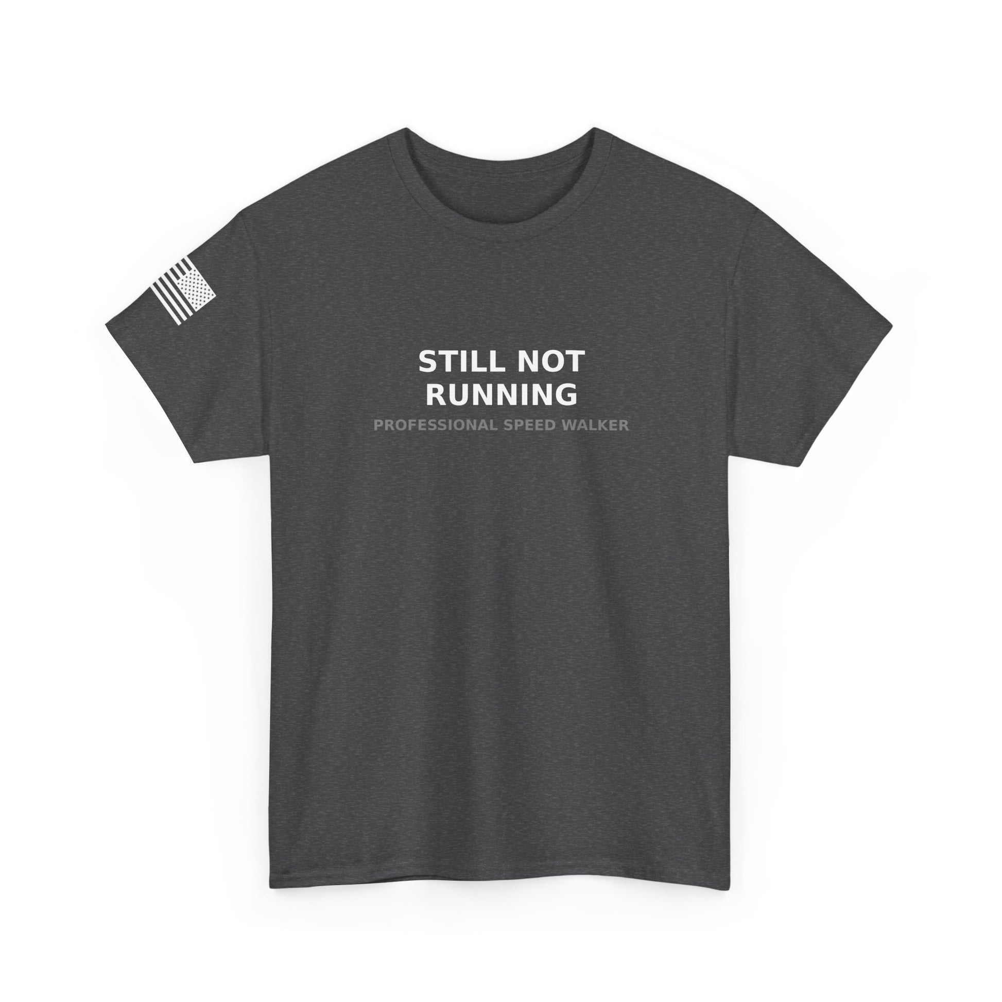 Hate cardio? The Still Not Running gym shirt is perfect anti-cardio apparel for lifters who'd rather squat than jog.